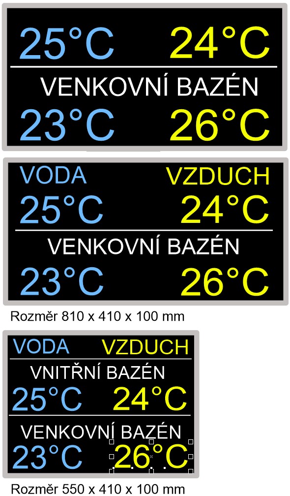 Venkovní ukazatel teploty pro koupaliště, čitelnost do 60 m.